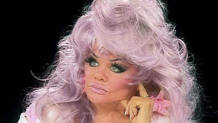 The end result of trying to put on features isn’t a bombshell. Whoever paints them on, man or woman, is a drag queen.
