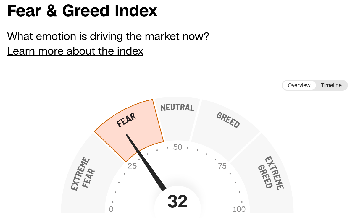 This morning I woke up and discovered CNN Business's new Fear & Greed Index: a rating of 0 being “extreme fear,” and a rating of 100 being “extreme greed.” At the moment I’m writing this, they say we’re at 32.